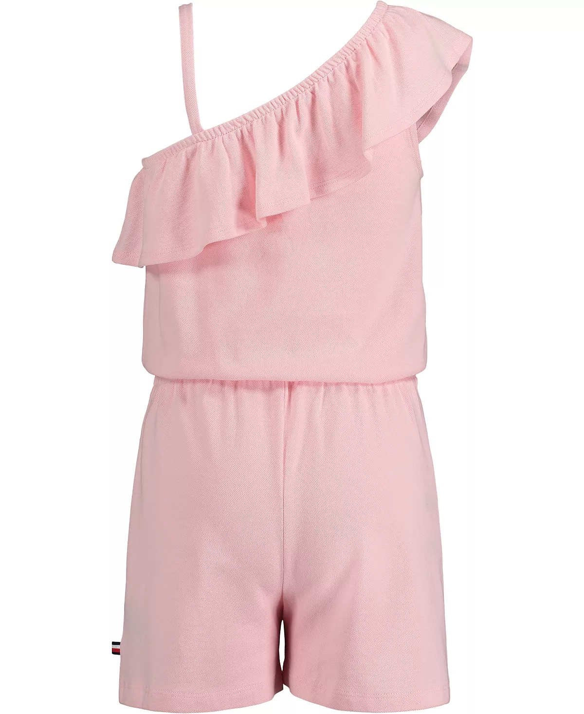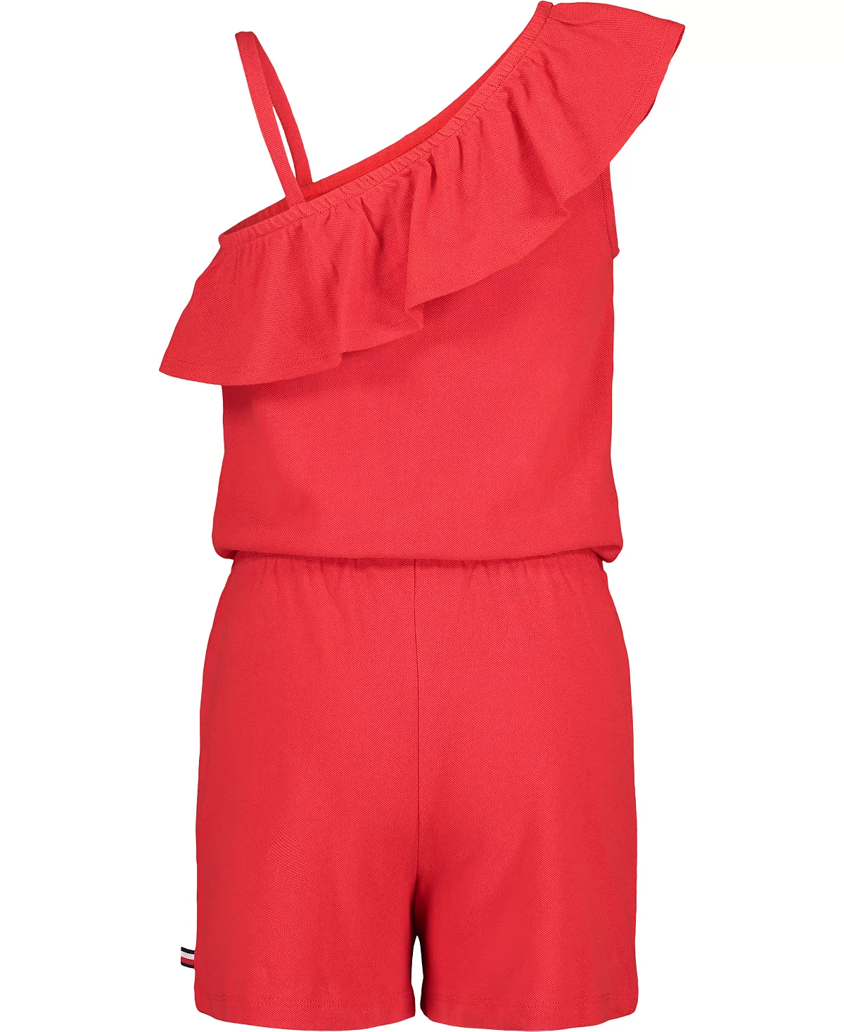 Sweet flounce trims the one shoulder design of this signature romper by Tommy Hilfiger, featuring a cinched waistband in a loose, easy fit.